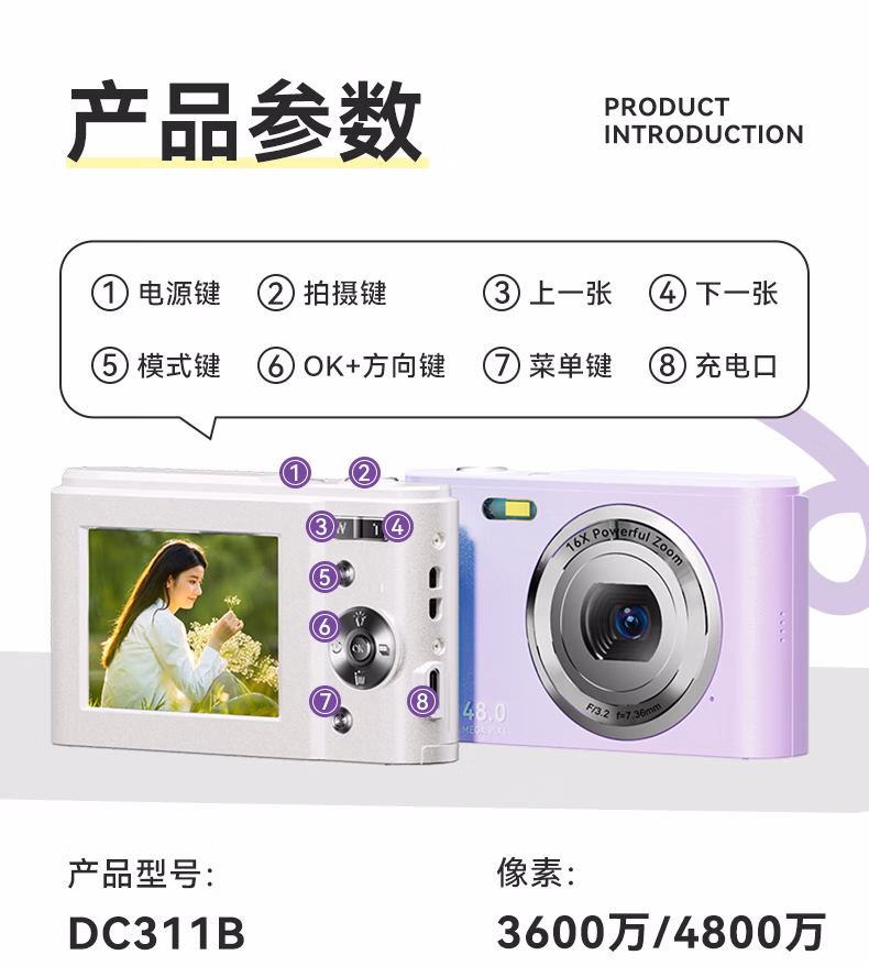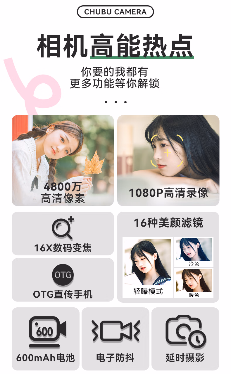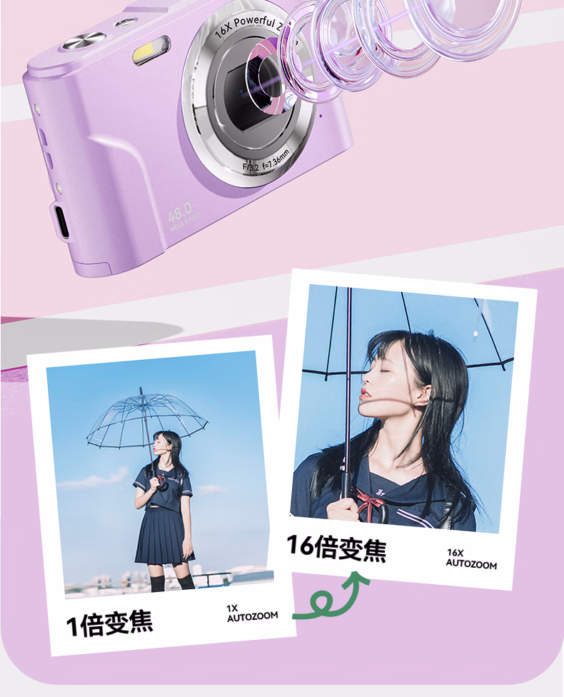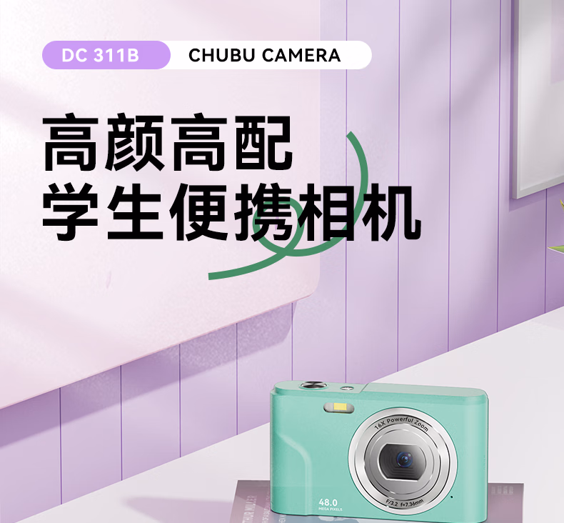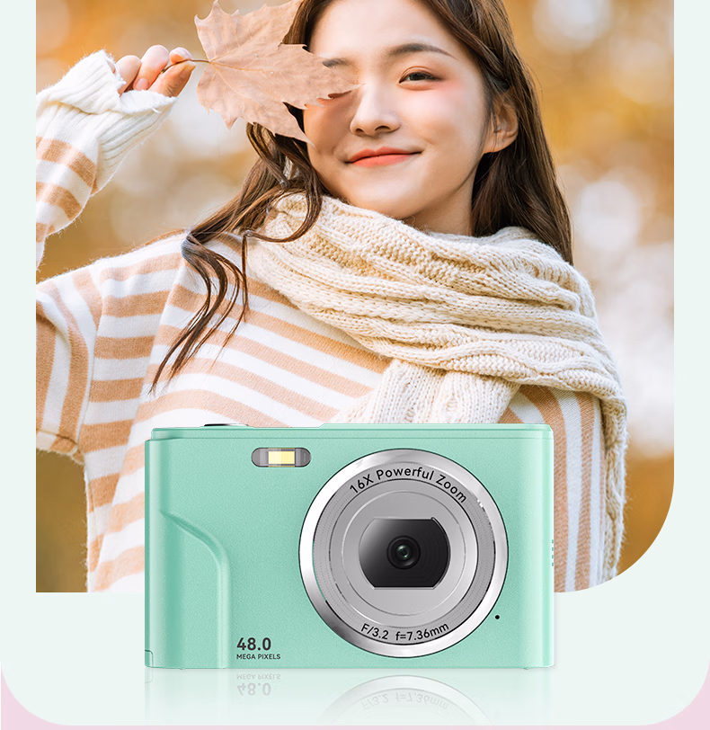 初步学生党高清数码相机ccd平替 校园高中生随身带小型平价新手相机学生高像素可传手机卡片机入门级照 冰川银 32G内存卡