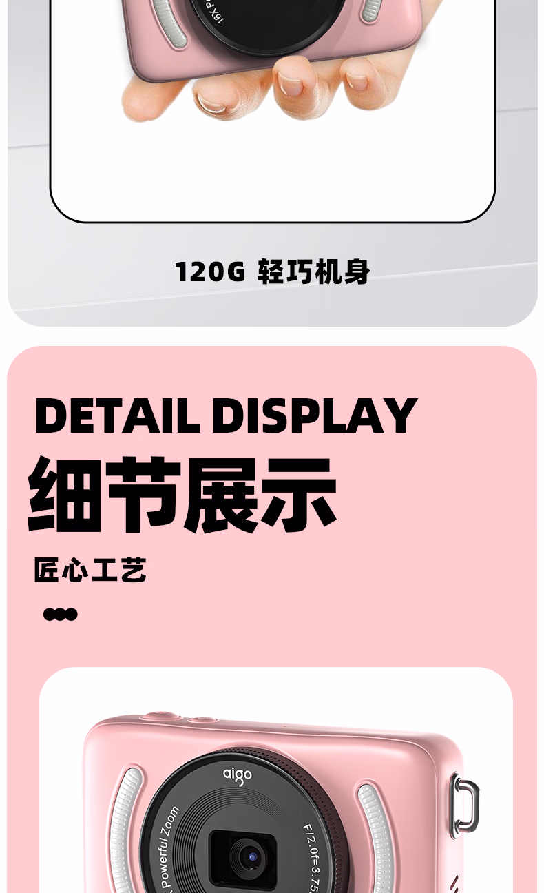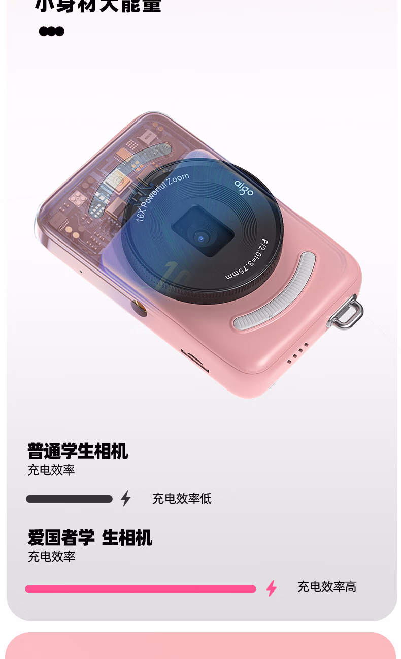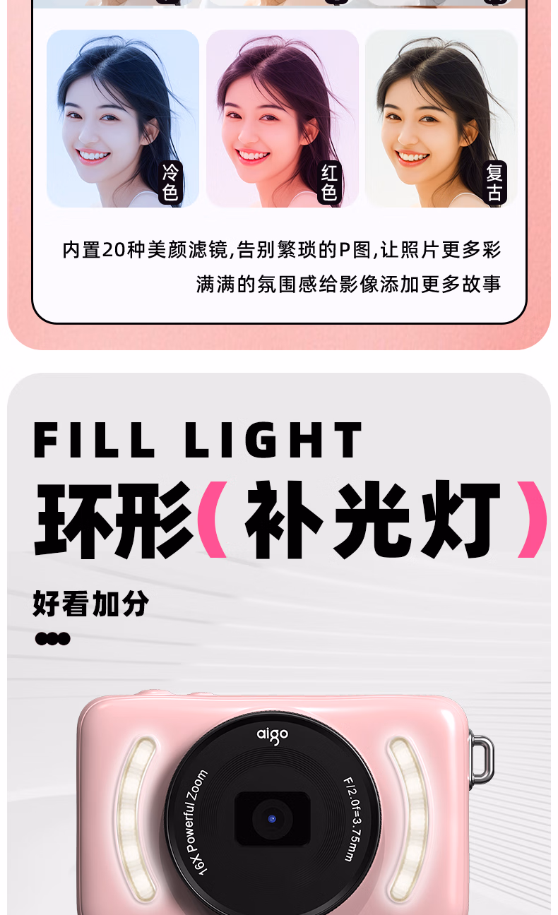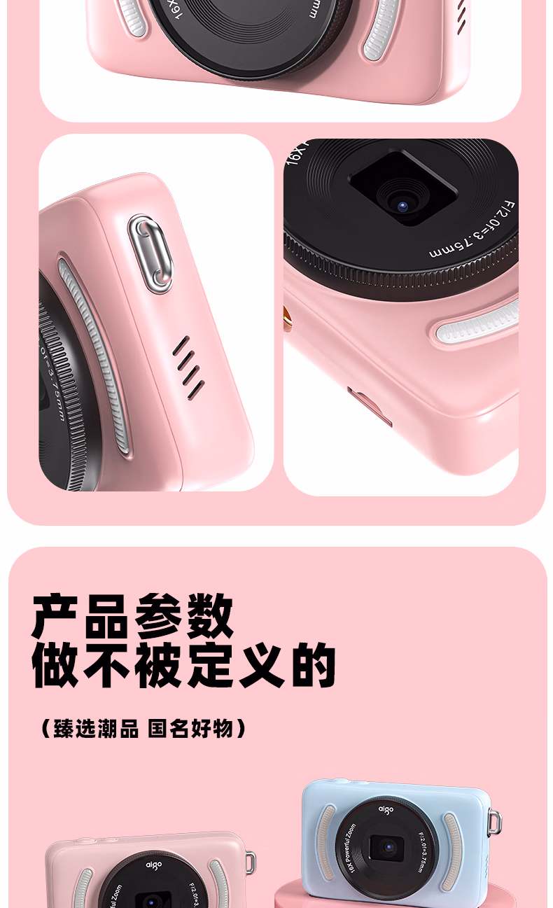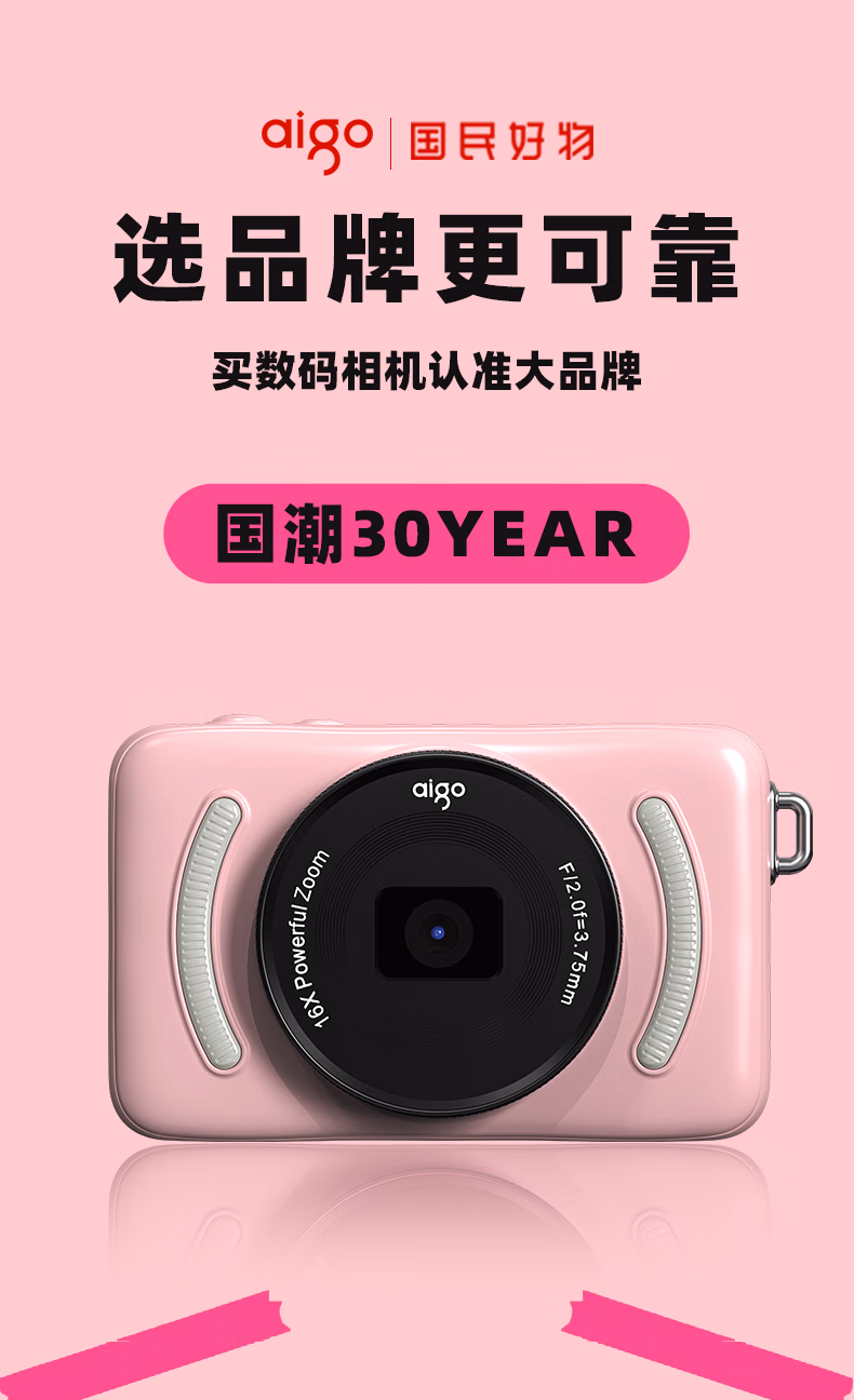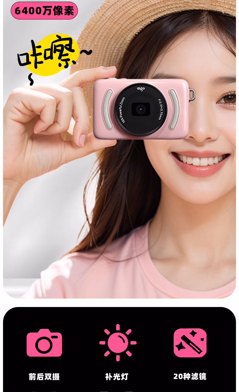 aigo爱国者入门级数码相机学生校园高中生自拍美颜女生vlog小卡片机儿童相机ccd平替 象牙白32G 前后双摄