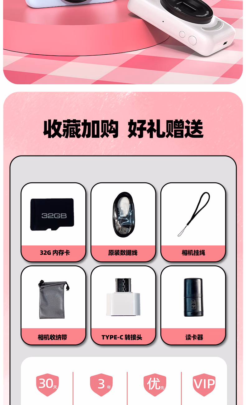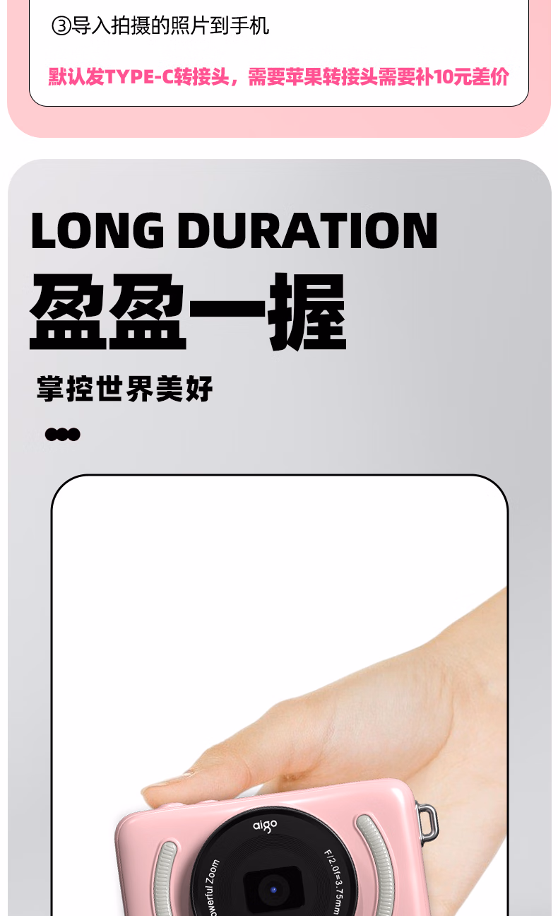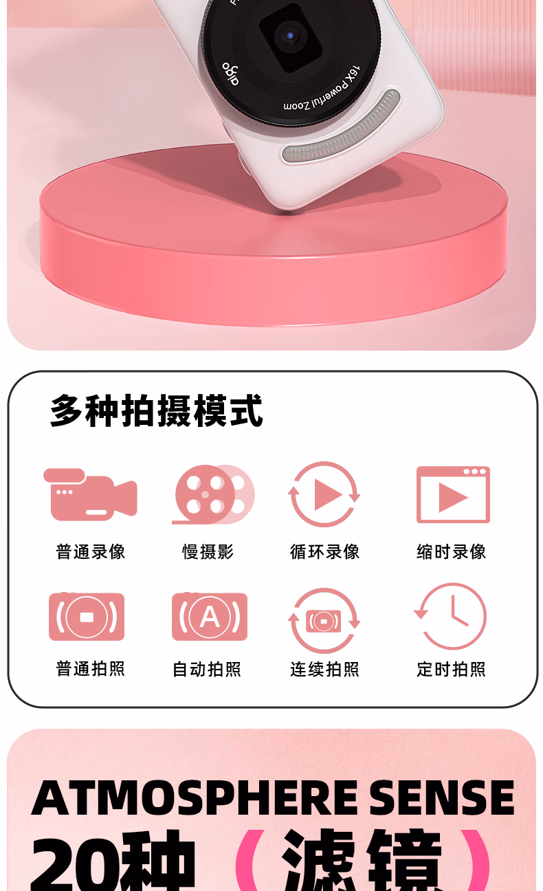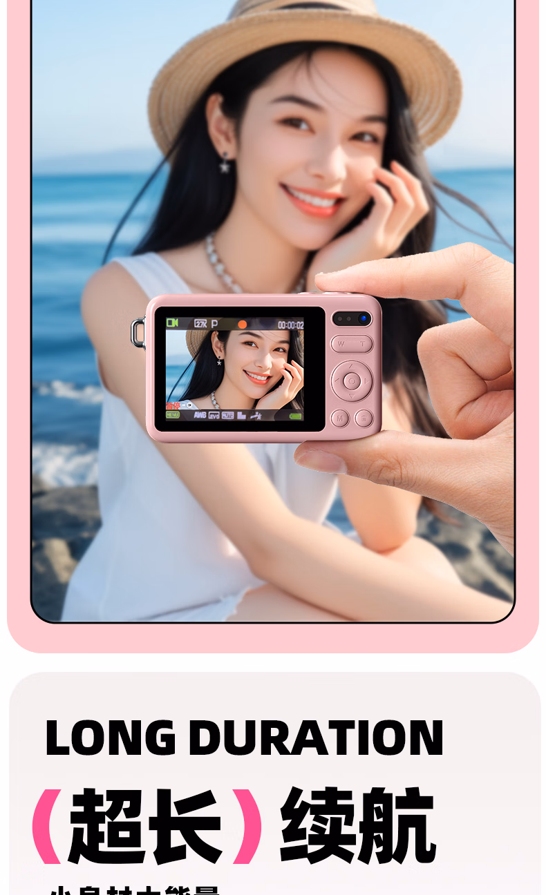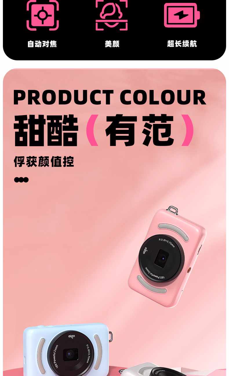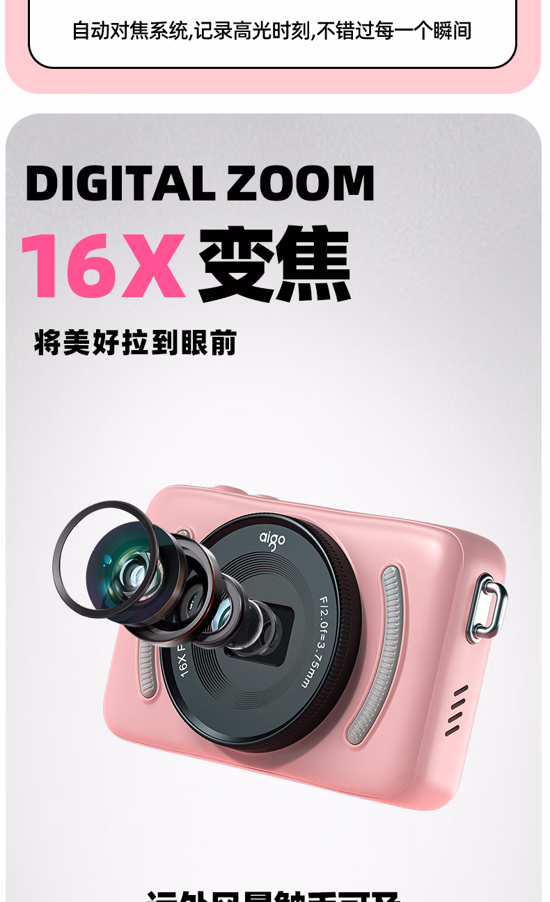 aigo爱国者入门级数码相机学生校园高中生自拍美颜女生vlog小卡片机儿童相机ccd平替 象牙白32G 前后双摄